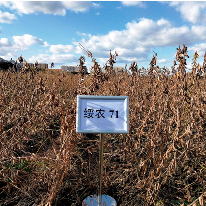 紫花尖葉,灰色茸毛,亞有限結(jié)莢習(xí)性,株高90厘米左右,有分枝,莢彎鐮形,成熟時(shí)呈褐色。種子圓形,種皮黃色,種臍黃色,無光澤,百粒重24.0克左右。兩年平均品質(zhì)分析結(jié)果:蛋白質(zhì)含量45.55%,脂肪含量
